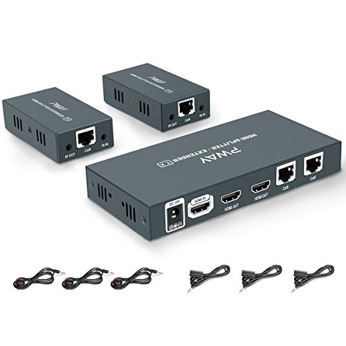 Best HDMI Extender Splitter 1x2 1080p Over Cat5e/Cat6/Cat7 Ethernet Cable with 2 HDMI Loop Out - Up to 50m/165ft - EDID Management & Bi-Directional IR Remote Control & POC Function (1 in 2 Out / 2-Port) with Free Worldwide Shipping